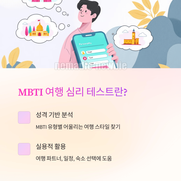 요즘 '나만의 여행 스타일 찾기'가 대세죠? MBTI 여행 테스트는 심리 유형(MBTI)을 바탕으로, 각 사람의 성격 특성과 라이프스타일에 어울리는 여행 스타일을 분석하는 심리 기반 테스트예요. 예를 들어 외향형은 활기찬 도시나 사람 많은 페스티벌을 선호하고, 내향형은 조용한 자연이나 산책 코스를 좋아하는 식이죠.