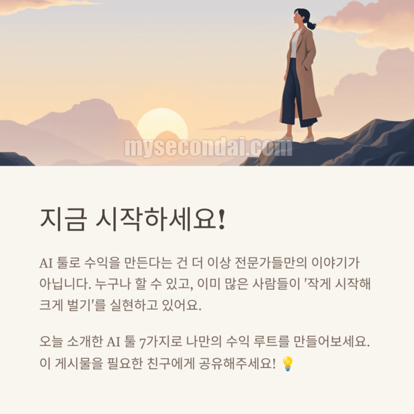 오늘 소개한 AI 툴 7가지를 바탕으로, 나만의 수익 루트를 만들어보세요. 클릭 한 번이 여러분의 미래를 바꿀지도 모릅니다 💡