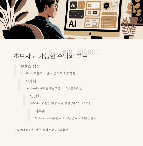 AI 툴을 활용하면 시간은 줄고, 결과물은 많아지며, 수익 가능성은 높아집니다. 과거엔 전문 지식이 있어야 가능했지만 지금은 ‘클릭 몇 번’으로 수익 흐름을 만들 수 있는 시대입니다.