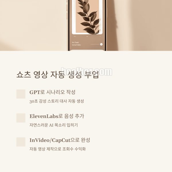 “영상 편집 몰라도 가능해요?” 네, 진짜 가능합니다. 요즘 뜨는 GPT 부업 중 가장 핫한 게 바로 ‘AI 쇼츠 자동 생성’이에요. GPT로 시나리오 짜고, ElevenLabs로 목소리 넣고, InVideo나 CapCut으로 영상 자동 제작하면 끝!