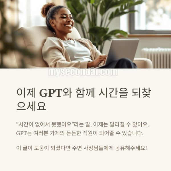 “혼자서 가게도 운영하고, 마케팅도 해야 해요” 그렇다면 GPT는 당신을 위한 최고의 직원이 되어줄 수 있어요.