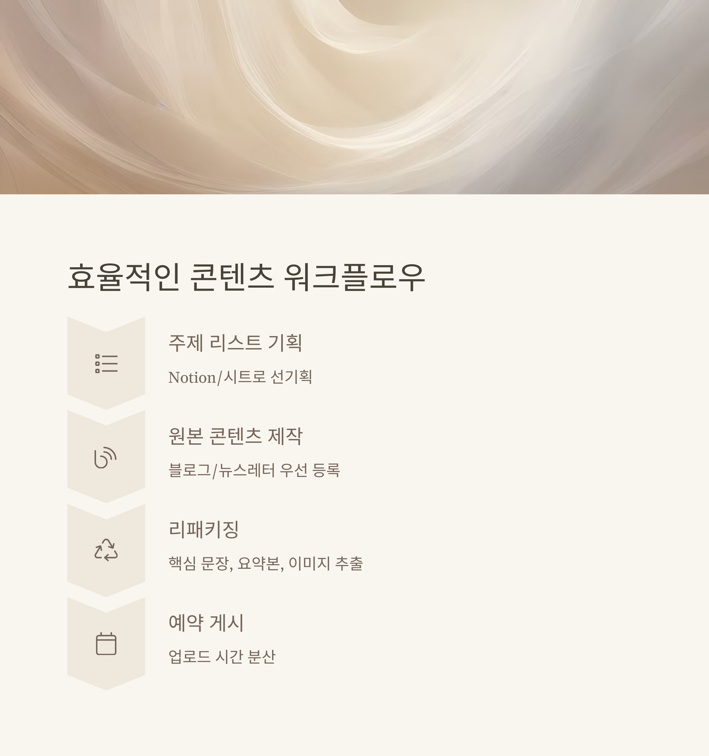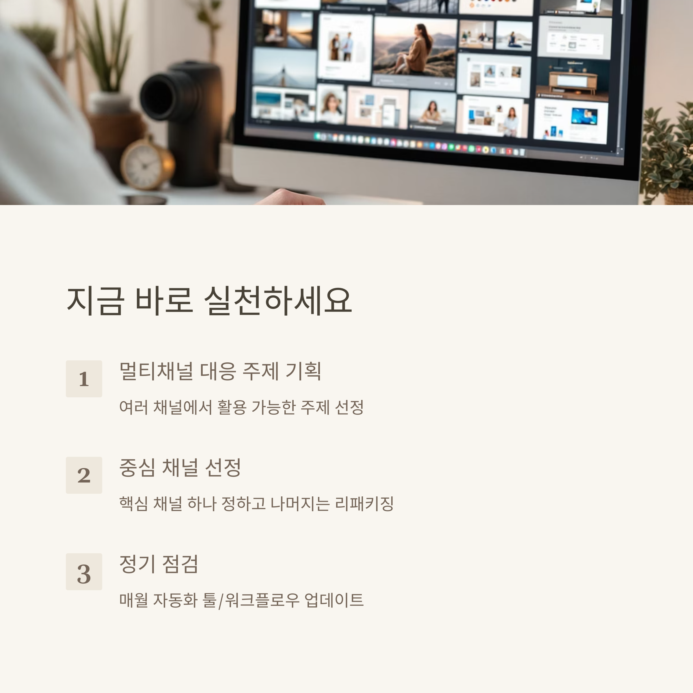 채널이 많아질수록 더 복잡해질 것 같지만, 오히려 구조를 잡으면 더 가볍고 빠르게 운영할 수 있어요. 오늘 알려드린 구조화 전략과 자동화 툴, 리패키징 팁을 잘 조합하면 콘텐츠 운영이 ‘노동’이 아닌 ‘시스템’으로 바뀔 거예요. 시작은 간단한 워크플로우 설계부터 해보세요. 콘텐츠의 효율이 곧 수익입니다. 😉