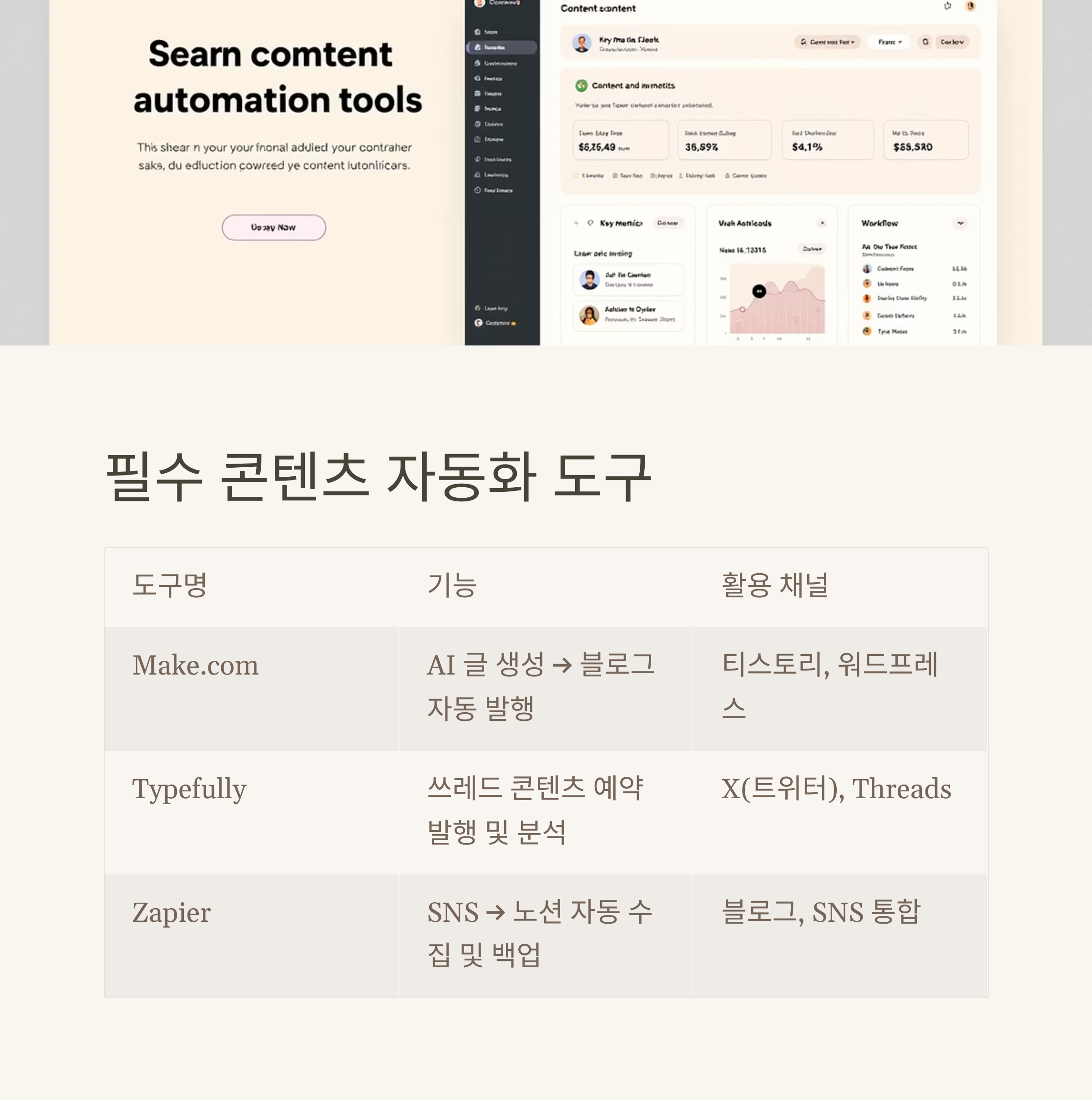 요즘은 사람 손으로만 모든 채널을 돌리는 시대는 끝났어요. 콘텐츠 자동화 툴을 적절히 활용하면, 운영 효율이 3배는 좋아집니다. 특히 다음 툴들은 저도 실제로 사용하면서 큰 도움을 받고 있어요.