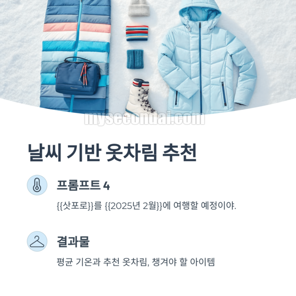 {{삿포로}}를 {{2025년 2월}}에 여행할 예정이야. 평균 기온과 추천 옷차림, 챙겨야 할 아이템 알려줘.