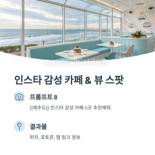 {{제주도}} 인스타 감성 카페 5곳 추천해줘. 위치, 포토존, 맵 링크도 같이 줘.