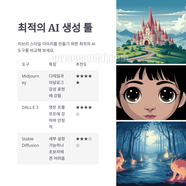 AI마다 그림체나 해석 방식이 다르다는 거, 알고 계셨나요? 지브리 스타일에 최적화된 도구들을 정리해봤어요.