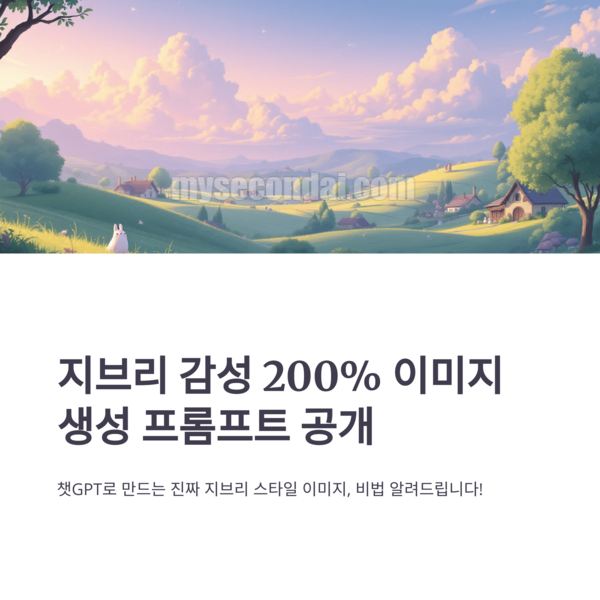 안녕하세요! 요즘 챗GPT와 DALL·E 같은 AI 이미지 생성 툴이 정말 핫하잖아요. 저도 처음엔 그냥 재미로 써보다가, 어느 날 ‘지브리 애니메이션 느낌 나는 이미지’를 만들고 싶은 거예요. 근데 웬걸? 제대로 된 프롬프트만 넣었더니, 진짜 스튜디오 지브리 감성이 뿜뿜 살아있는 이미지가 딱! 오늘은 제가 직접 써보고, 수정하고, 테스트해본 "지브리 스타일 이미지 프롬프트"를 소개해드릴게요. 챗GPT를 활용해서 어떻게 만들고 응용하면 좋을지까지, 완전 실전 팁으로요. 지브리 팬이라면 절대 놓치지 마세요.
