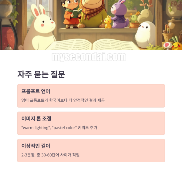 프롬프트에 "warm lighting", "pastel color", "soft glow" 같은 키워드를 추가해보세요. 특히 'atmosphere' 관련 키워드가 톤에 큰 영향을 미쳐요.