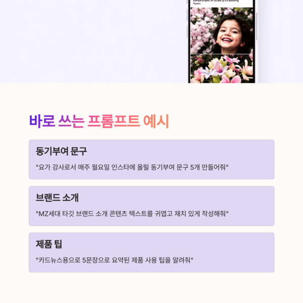 - “카드뉴스용으로 5문장으로 요약된 제품 사용 팁을 알려줘”