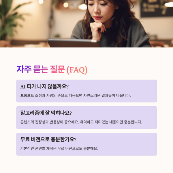 이에요. 감성 글이면 감성 사진, 정보글이면 명확한 인포그래픽 스타일이 잘 어울리죠.