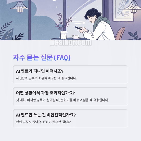 대부분 괜찮지만, 상대방이 AI에 민감할 수 있어요. 너무 티나지 않도록 조심스럽게 활용하세요.