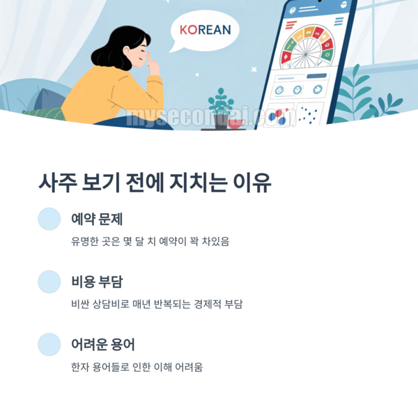 유명한 곳은 몇 달 치 예약이 꽉 차 있고, 처음 보는 곳에 가자니 신뢰가 안 가고. 비싼 상담비는 또 어떻고요. 막상 들어도 어려운 한자 용어들 때문에 '그래서 좋다는 거야, 나쁘다는 거야?' 갸우뚱했던 경험, 저만 있는 거 아니죠?