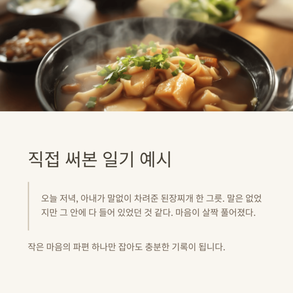 이처럼 일기는 거창할 필요 없어요. 작은 마음의 파편 하나만 잡아도 충분한 기록이 됩니다.