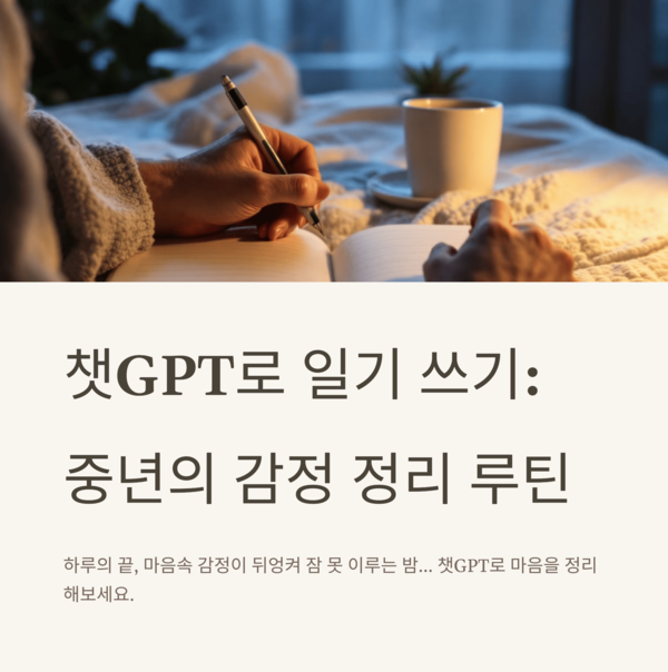 안녕하세요, 오늘은 조금 특별한 주제로 이야기를 나눠보려 해요. 어느 순간부터 ‘감정’이라는 게 참 버겁게 느껴질 때가 있더라고요. 특히 중년이 되면 하루가 다르게 쌓이는 책임감, 잊히는 꿈, 그리고 말하지 못한 감정들이 마음을 무겁게 하곤 하죠. 그런 날엔 일기라도 써볼까 싶지만, 막상 펜을 들면 뭐부터 써야 할지 모르겠는 게 현실입니다. 그런데 요즘은 챗GPT를 이용해서 일기 쓰기를 돕는 분들도 많더라고요. 글을 잘 쓰지 않아도, 마음만 있다면 누구나 시작할 수 있는 새로운 감정 정리 루틴. 지금부터 제가 직접 해보고 괜찮았던 방법 TOP 5를 소개해볼게요.