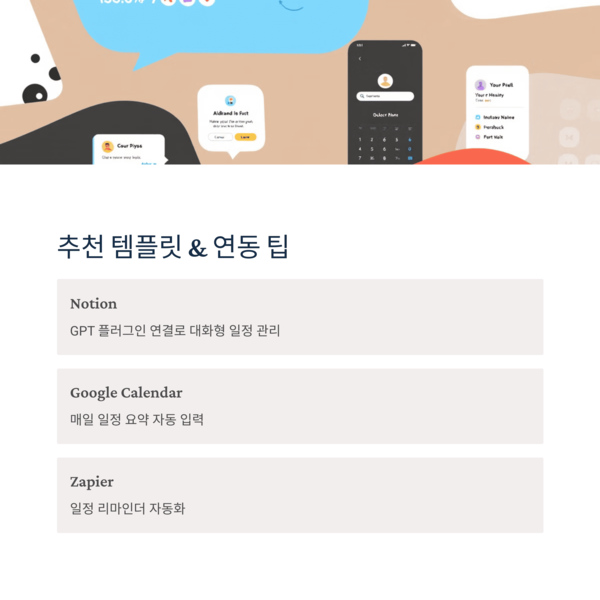 아래 도구들과 챗GPT를 함께 사용하면 일정 관리가 더 강력해져요: