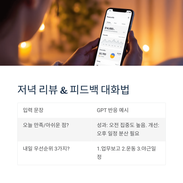하루의 마무리는 꼭 돌아보는 시간이 필요하죠. 저는 밤 10시쯤 GPT에게 이렇게 말해요: