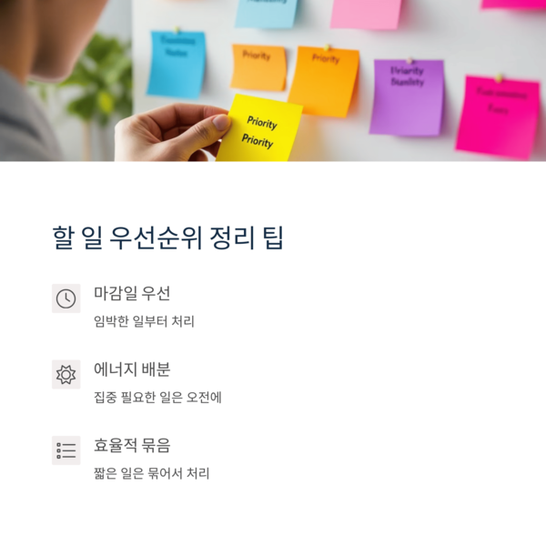 “오늘 할 일이 너무 많아…” 싶을 때는 챗GPT에게 “이 중에서 뭐부터 하면 좋을까?”라고 물어보세요. 아래 기준으로 정리해주는 경우가 많아요: