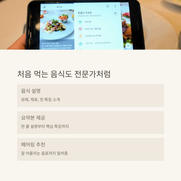 - 음식 설명 요약본까지 요청 가능 ("한 줄로 설명해 줘")