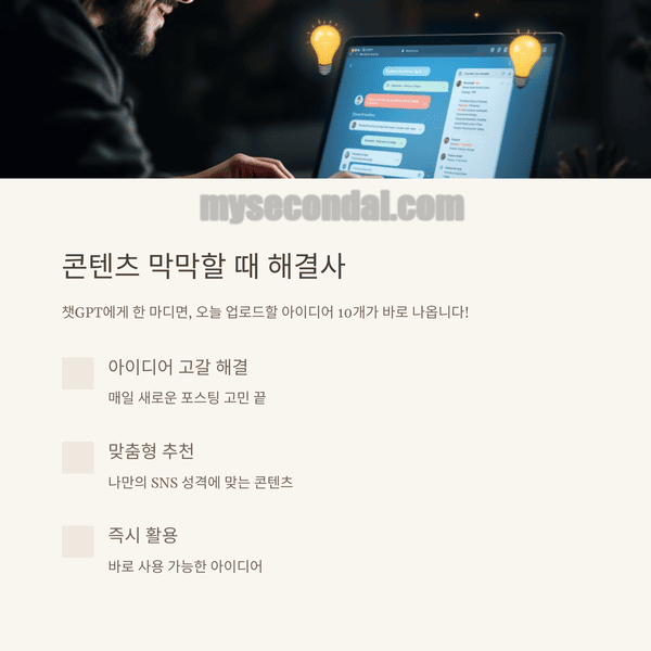 콘텐츠 막막할 때? 챗GPT에게 한 마디면, 오늘 업로드할 아이디어 10개가 바로 나옵니다!