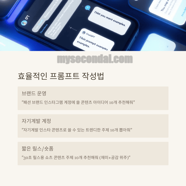챗GPT가 제공하는 아이디어는 단순한 ‘주제’일 뿐, 어떤 형태로 구현하느냐에 따라 리치와 반응률이 크게 달라질 수 있어요. 예를 들어 하나의 아이디어를 다음과 같이 나눠보세요: