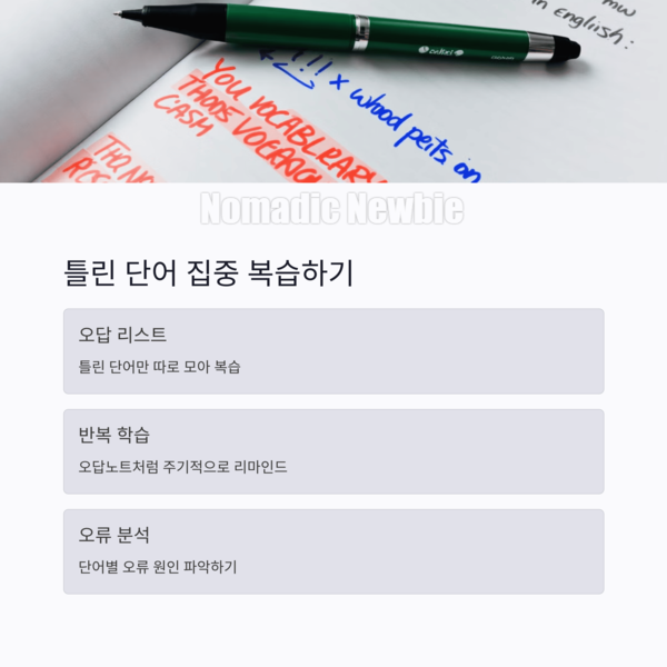 오답노트처럼 틀린 단어만 따로 모아서 주기적으로 복습하세요. 챗GPT가 알아서 리스트도 만들어줘요.