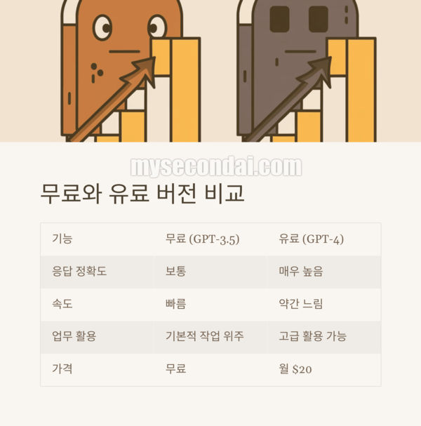| 기능 | 무료 (GPT-3.5) | 유료 (GPT-4) |