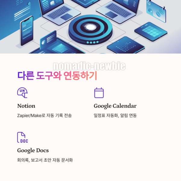 Notion, Google Calendar, Todoist, Zapier, Make 등과 함께 사용하면 GPT와의 연동이 훨씬 편리해지고 자동화 범위도 넓어집니다.