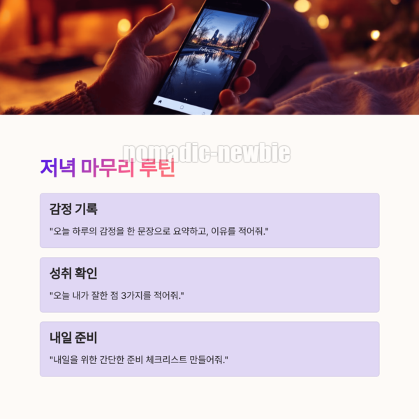 하루를 잘 마무리하는 것도 자동화의 중요한 부분입니다. 챗GPT를 활용하면 단순한 다이어리 정리를 넘어서, 감정 기록, 회고, 다음 날 계획까지 스마트하게 설정할 수 있어요.