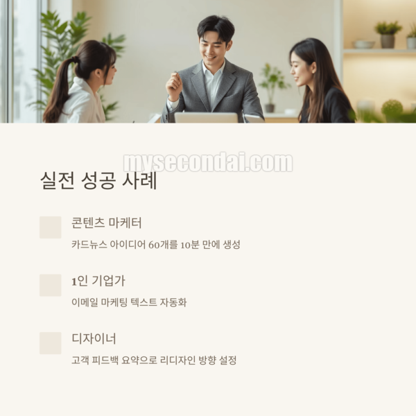 다음은 실제 전문가들이 챗GPT를 실무에 적용해 성과를 낸 사례입니다.