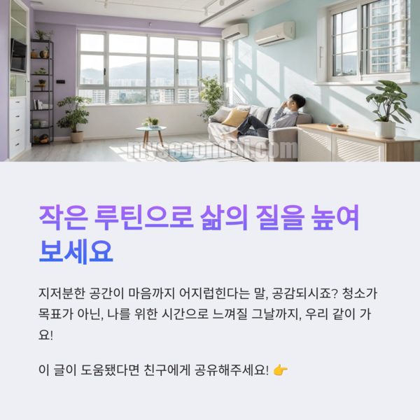 지저분한 공간이 마음까지 어지럽힌다는 말, 공감되시죠? 작은 루틴 하나로 삶의 질이 바뀌는 경험, 저처럼 여러분도 해보셨으면 좋겠어요. 청소가 목표가 아닌, 나를 위한 시간으로 느껴질 그날까지, 우리 같이 가요!