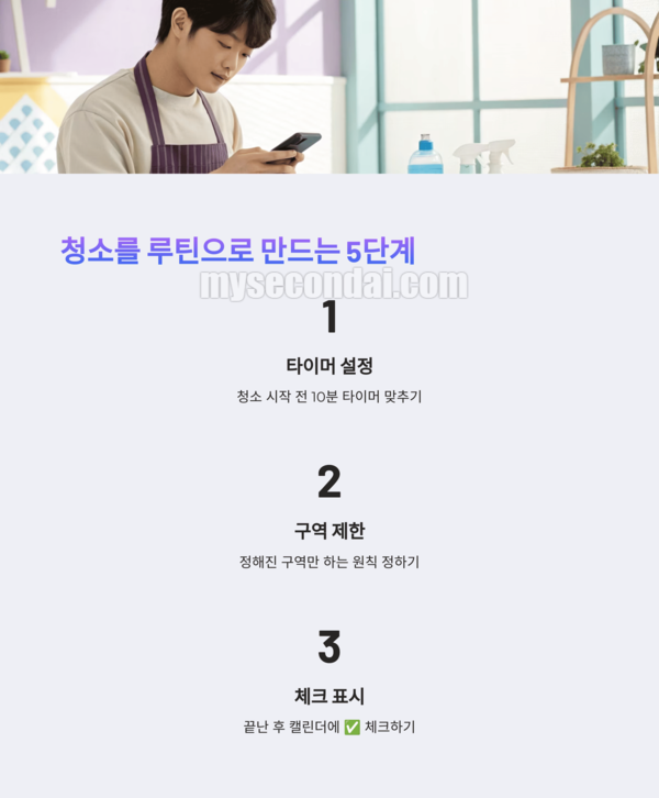 주중 10분 분할 청소, 구역별 분산 전략, 피로도 최소화를 기준으로 구성돼요. 현실적인 루틴이죠.