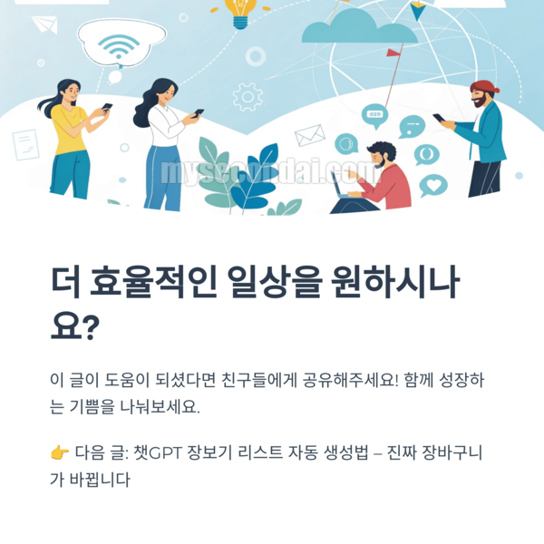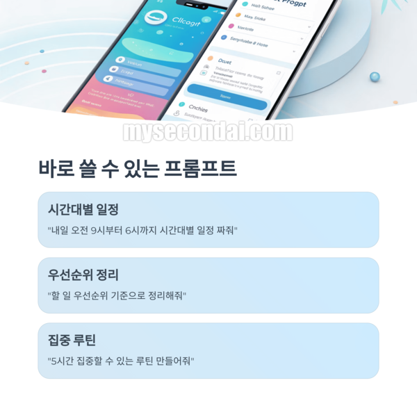 이제 퇴근 후 10분, 그냥 흘려보내지 마세요. 그 짧은 시간이 내일의 나를 훨씬 더 가볍고 선명하게 만들어줄 수 있어요. 챗GPT는 단순한 도구가 아니라, 일상을 함께 정리해주는 친구가 될 수 있답니다. 오늘 밤, 잠들기 전 딱 한 번만 “내일 일정 짜줘”라고 말해보세요. 그 순간부터 당신의 루틴이 바뀌기 시작할 거예요.