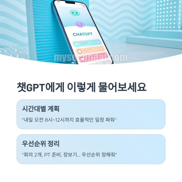 안녕하세요! 요즘 들어 유독 ‘하루가 너무 짧다’고 느끼시는 분 계시죠? 저도 똑같았어요. 아침마다 오늘 할 일이 뭐였지? 하며 허둥대기 일쑤였죠. 그런데 어느 날, 우연히 챗GPT에게 “내일 일정 짜줘”라고 말해본 이후 제 일상이 정말 효율적으로 바뀌었답니다. 단 10분이면 가능한 변화, 오늘 그 방법을 공유드릴게요!