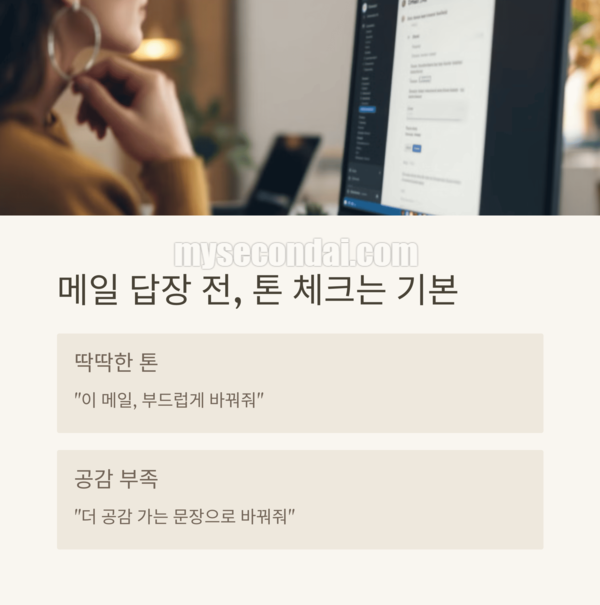 | "톤이 너무 딱딱한 것 같아요" | → GPT에게 "이 메일, 부드럽게 바꿔줘" |