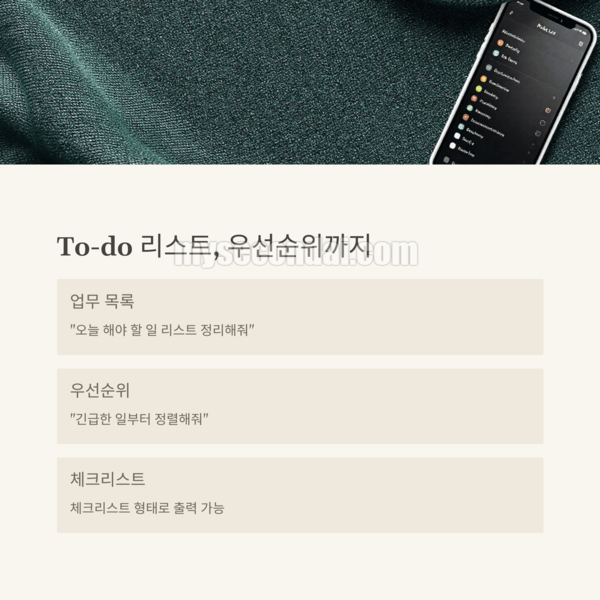 | 업무 목록 정리 | “오늘 해야 할 일 리스트 정리해줘” |