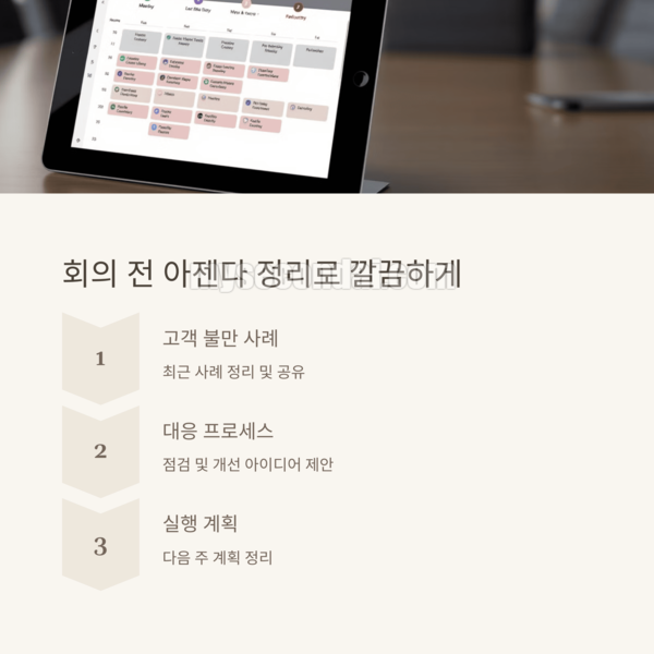 이렇게 정리해두면 팀원들도 미리 준비하고, 회의 시간도 확 줄어요. "이번 회의 알차다!" 소리 듣는 비결, 별거 아닙니다.