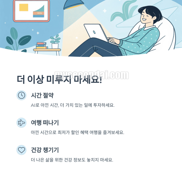 혹은 더 나은 삶을 위한 건강 정보를 얻고 싶으신가요? AI를 통해 시간을 절약하고, 그 시간을 더욱 가치 있는 일에 투자해보세요.