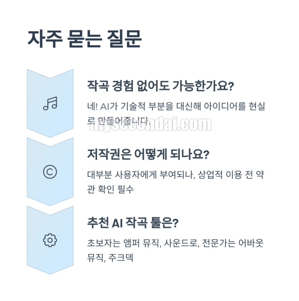 A. 네, 물론입니다! AI는 작곡의 기술적인 부분을 대신해주기 때문에, 음악적 지식이 없어도 당신의 아이디어를 현실로 만들 수 있어요. 처음엔 간단한 멜로디와 분위기만으로 시작해 보세요. AI가 그 감성을 파악하고 놀라운 결과물을 내놓을 겁니다.