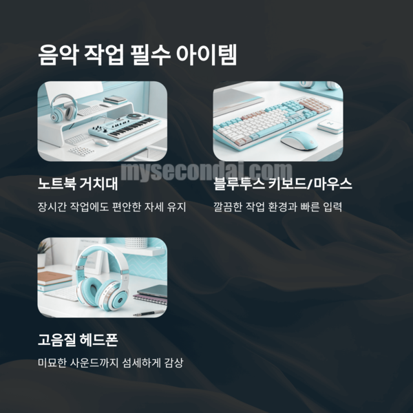 음악 작업 효율을 높여주는 필수 아이템들도 함께 준비해 보세요. AI 작곡은 물론, 전반적인 생산성을 높여줄 겁니다.