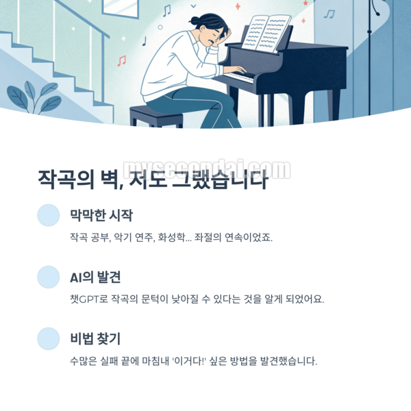 그러다 챗GPT를 만나게 되었고, AI의 도움을 받으면 작곡의 문턱이 훨씬 낮아질 수 있다는 것을 알게 되었습니다. "정말 5분 만에 나만의 노래를 만들 수 있다고?" 처음엔 믿기지 않았어요. 하지만 직접 시도해 보고, 수많은 실패를 거듭한 끝에 마침내 '이거다!' 싶은 비법을 찾아냈습니다. 이 글을 읽는 여러분도 오늘 당장 AI 작곡가로 변신할 수 있도록, 제가 겪었던 시행착오와 그 속에서 얻은 핵심 팁들을 아낌없이 풀어놓을 테니, 기대하셔도 좋습니다. 여러분의 감성을 담은 노래, 이제 정말 현실이 될 거예요.