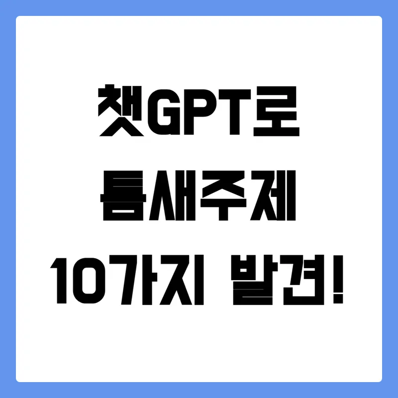 이 세 가지 기준을 통해 ChatGPT가 제안한 아이디어들을 냉철하게 평가하고, 여러분의 블로그에 가장 빛을 발할 틈새 주제를 최종적으로 선정해 보세요. 올바른 선택이 블로그 성공의 지름길이 될 것입니다.