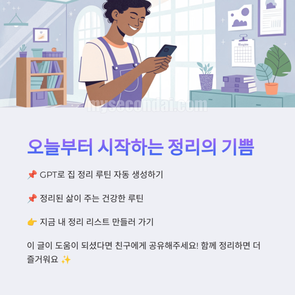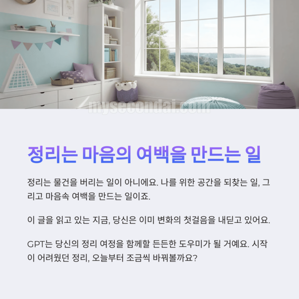 GPT는 당신의 정리 여정을 함께할 든든한 도우미가 될 거예요. 시작이 어려웠던 정리, 오늘부터 조금씩 바꿔볼까요?