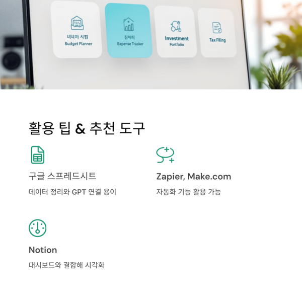 챗GPT 가계부를 좀 더 효율적으로 사용하고 싶다면, 다음 도구들과 함께 써보세요: