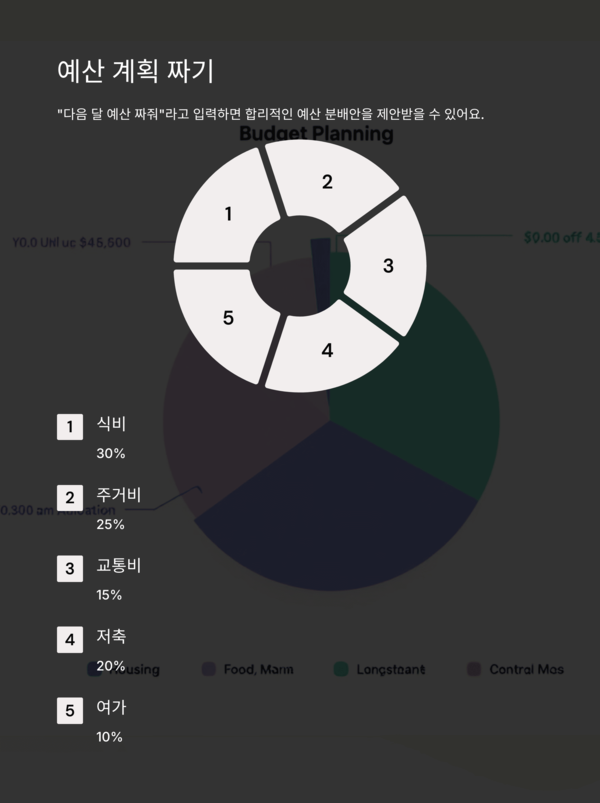 챗GPT에게 “다음 달 예산 짜줘”라고 입력하면, 이전 지출 데이터를 바탕으로 합리적인 예산 분배안을 제안해줘요. 특히 절약 목표를 설정해두면, 그에 맞게 우선순위를 재조정해주는 기능이 진짜 유용하더라구요.