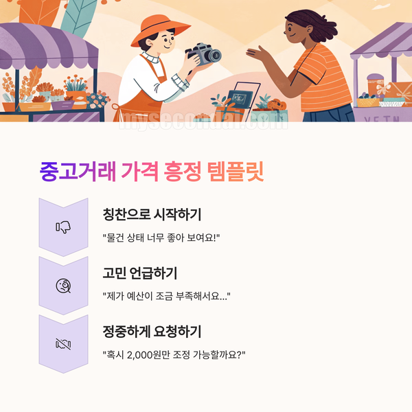 - 먼저 칭찬으로 시작하기 ("물건 상태 너무 좋아 보여요!")