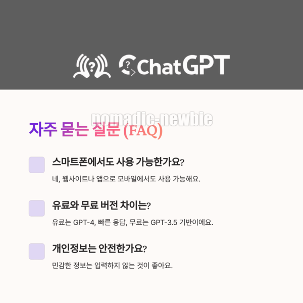유료 버전은 최신 모델(GPT-4), 더 빠른 응답, 우선 처리 등의 이점을 제공합니다. 무료 버전은 GPT-3.5 기반이에요.